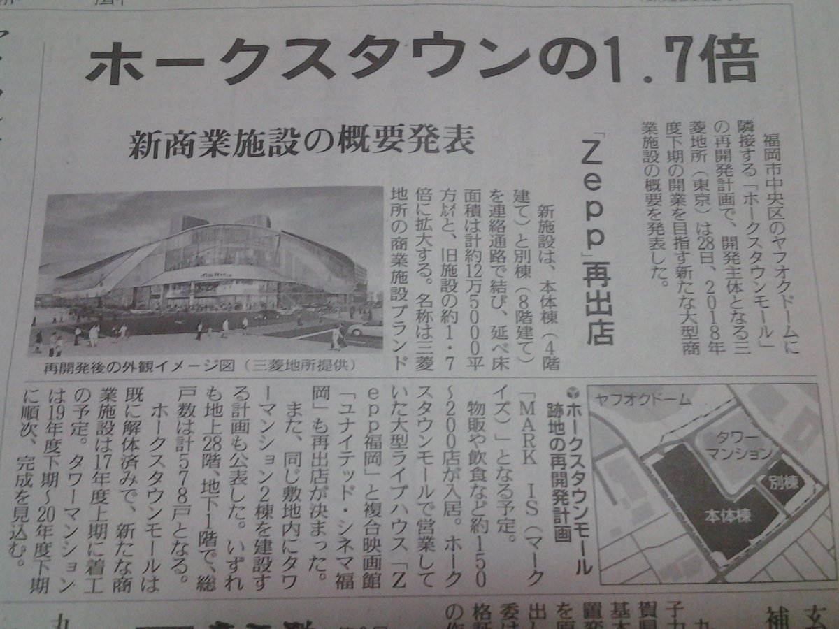 ট ইট র まろん ヤフオクドームに隣接するホークスタウンの跡地は Mark Is マークイズ となる予定 物販や飲食など約150 0店が入居 大型ライブハウス Zepp福岡 と 複合映画館 ユナイテッド シネマ福岡 も再出店