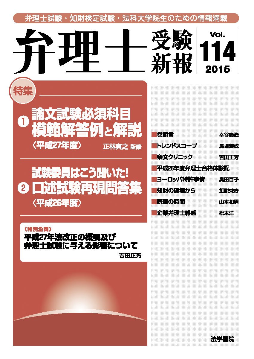 Lohaco 弁理士受験新報 弁理士試験 知財検定試験 法科大学院生のための情報満載 Vol 114 2015 弁理士受験新報編集部 法律 Bookfan For Lohaco